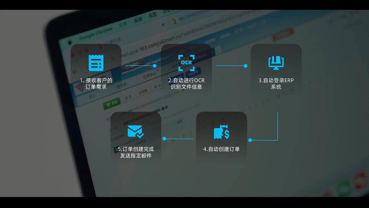 借助RPA+AI技术,整个订单信息录入、工作任务分发和业务信息同步等实现自动化,每票订单录入耗时仅约1分钟,效率提高了86.7%,并且能够快速地处理大量的数据。全流程自动化消除了人为错误,准确率可以达到100%。