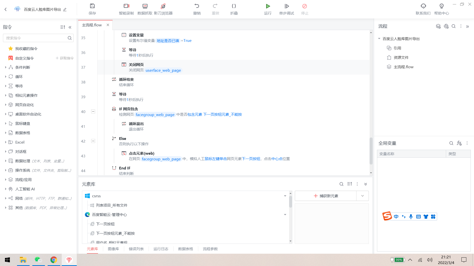此后,我又加入了某期实战营的学习。随着学习的深入,我掌握的技能也更多,理解的逻辑更有条理,在此基础上我再次修改了自动批量下载图片的实现部分。我将这个当成一个试验场, 各种新命令、子流程、异常处理等都往上招呼。
