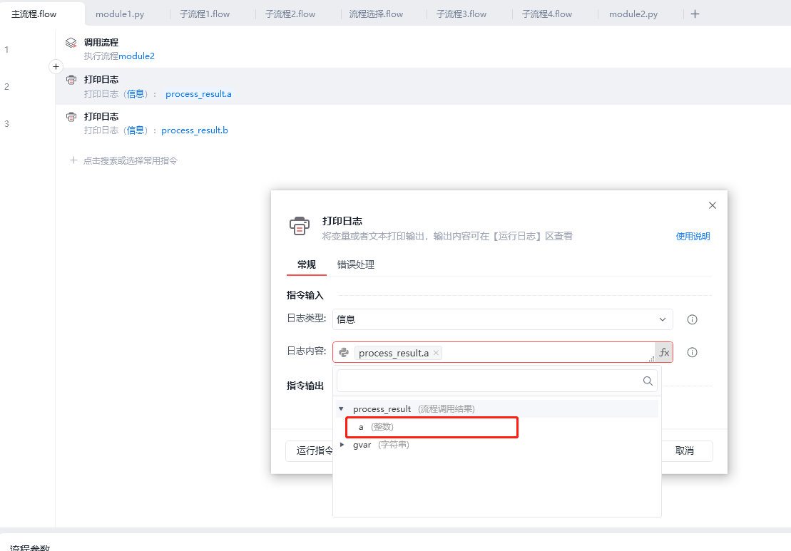 在PY文件里面设置流程参数,这个和普通.flow的子流程是一样的