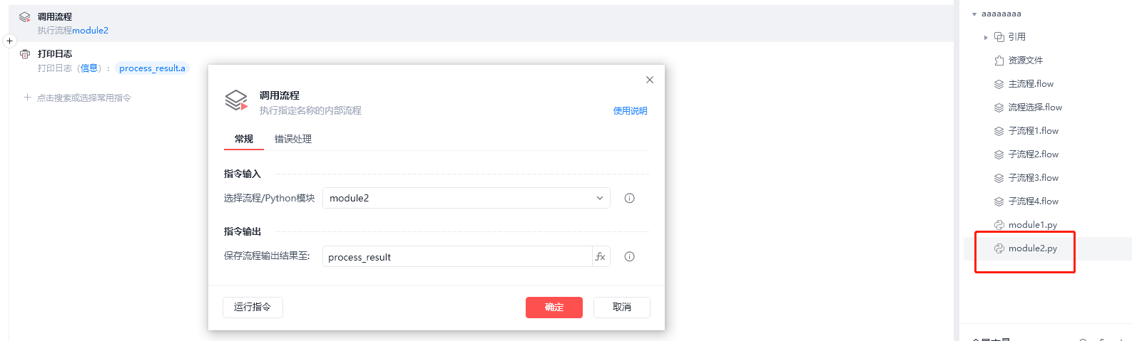 # 4. 可视化流程中可以通过"调用模块"的指令使用此模块