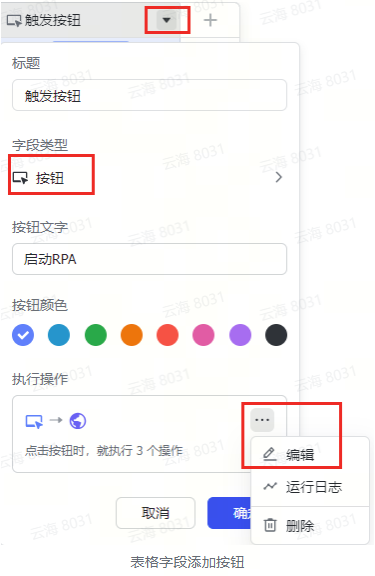 在项目中跟客户讨论的时候出来的想法,客户想要可视化跟RPA的交互,让业务有更好的使用体验。正好发现飞书表格可以设置字段为按钮,并且配置上自动化流程,让业务根据需要去触发RPA应用。