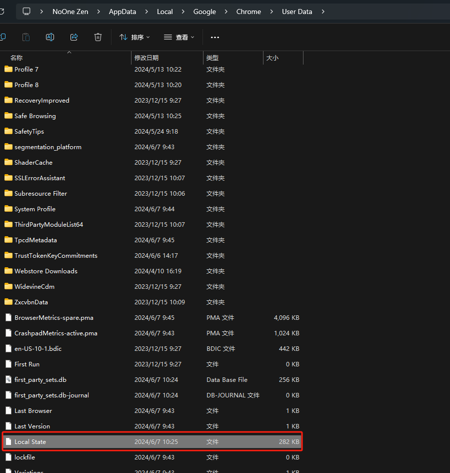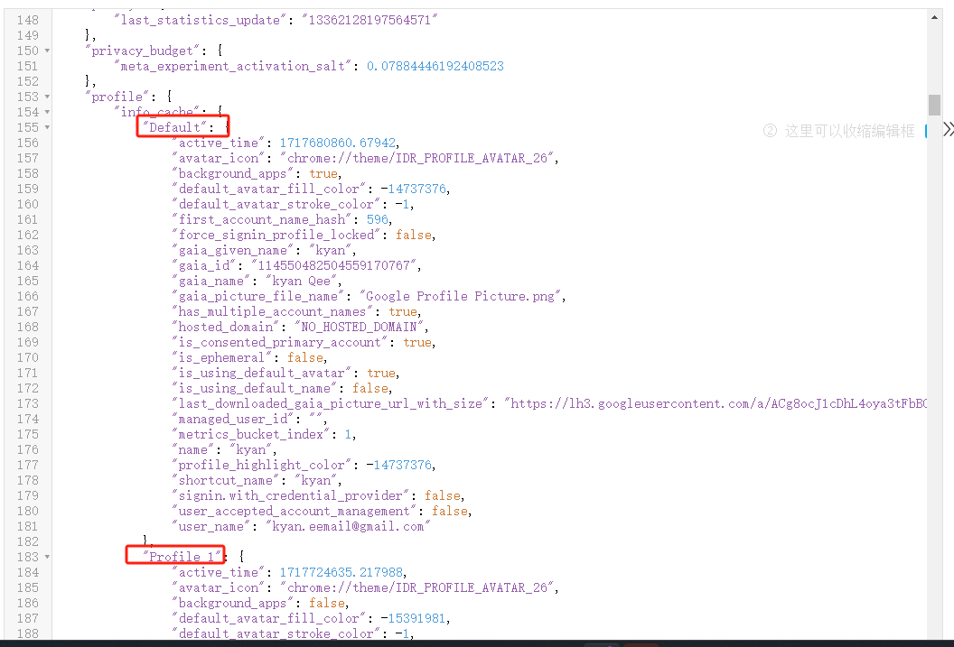 - 所有访客数据都存储在 %LocalAppData%\Google\Chrome\User Data 的 Local State 文件中,内容格式是JSON,所以只需要将输入读出来,再转成JSON对象,进一步提取即可。