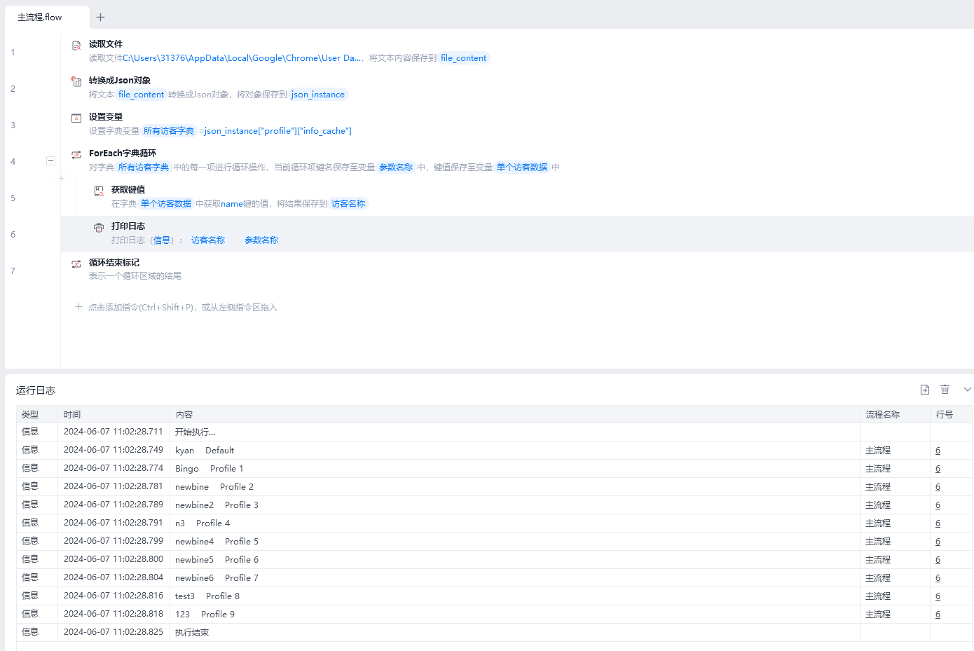 2. 如果想要打开指定的访客,可以考虑把前面循环得到的数据,以访客名称为键,参数名称(例如Profile 1)为值,保存到字典中;后续可以直接通过访客名称,取到对应的参数,再通过打开网页,进行打开即可。