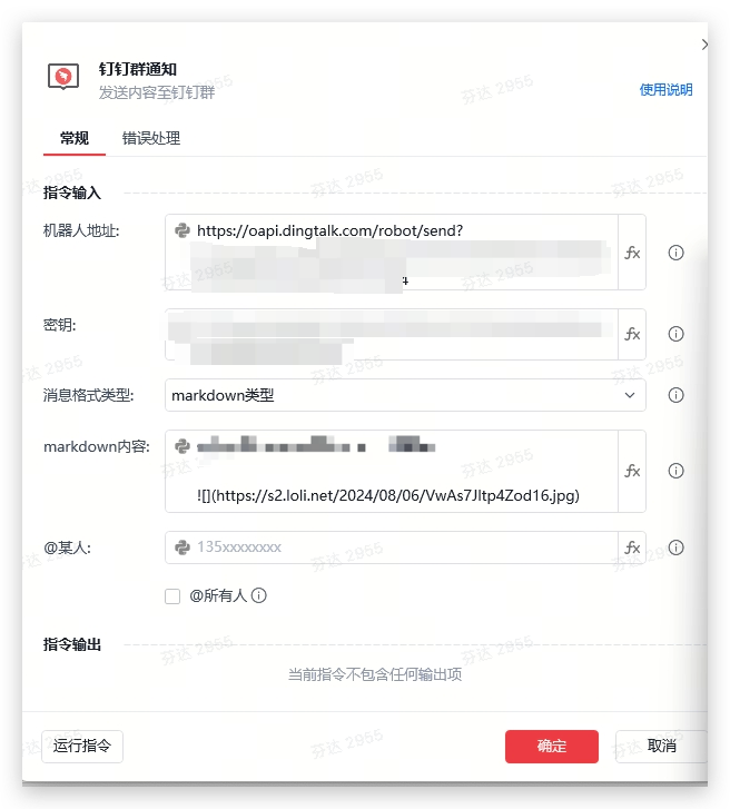 在使用“钉钉群通知”功能发送图片时,有时会遇到一个棘手的问题:图片在群聊中无法正常显示,显示为裂开状态。然而,当我们尝试通过图片的URL直接在网页浏览器中打开时,图片却能够完美呈现。此外,发送过程中网络状况一直显示为良好。最初,我们怀疑这可能是网络波动造成的,但经过多次尝试,包括单独运行测试和更改图片格式;压缩图片大小等等,问题依旧存在。