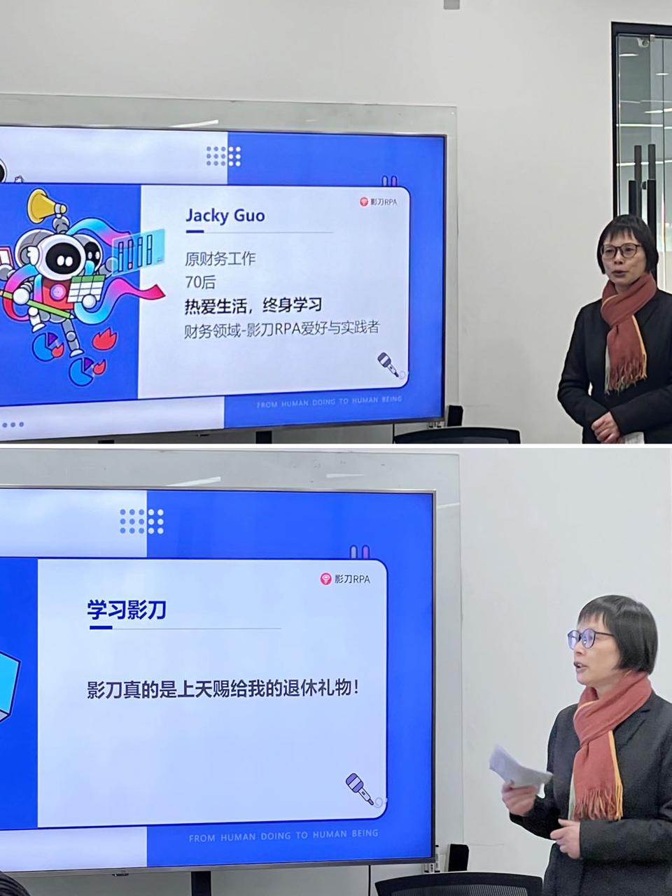 JackyGuo 分享了对影刀的认识和学习经验。她说