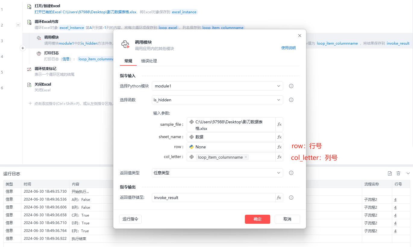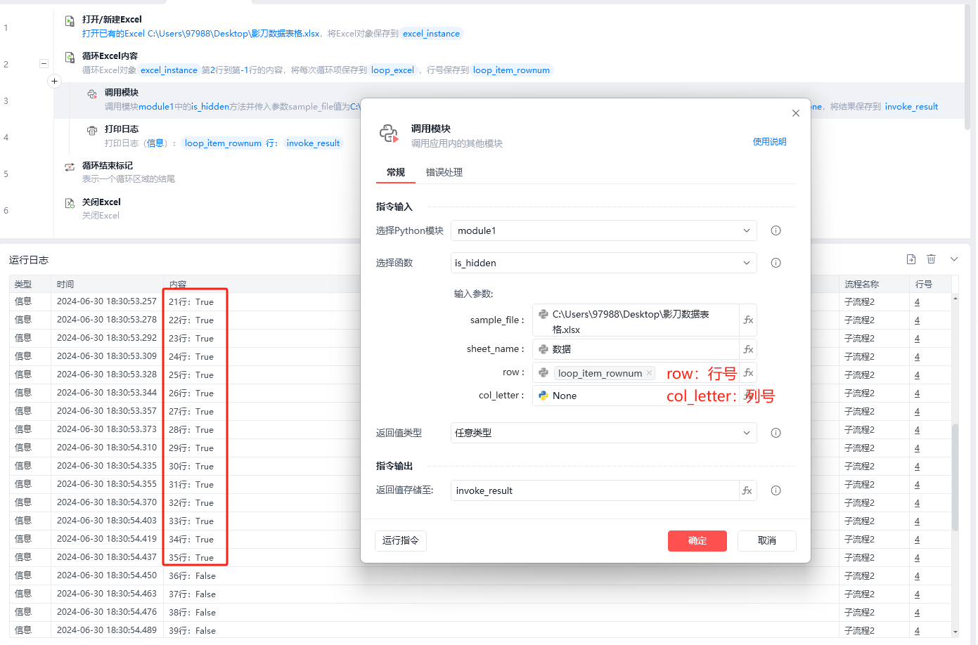 但是如果直接使用影刀指令【读取excel内容】或【循环excel内容】,我们无法实现这个操作。