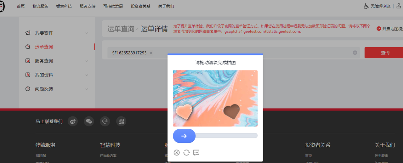 在顺丰官网(https://www.sf-express.com/chn/sc)中,通过输入订单编号+验证的形式,通过元素获取快递物流轨迹