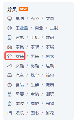 2、点击“女装”分类进入淘宝搜索界面
