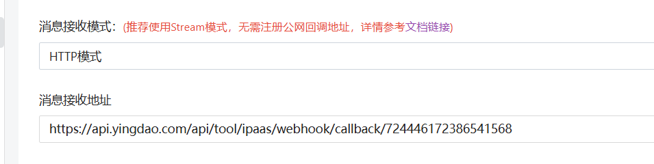 增加“机器人”能力,将消息接受模式改成,HTTP模式,并将消息接受地址改成前面配置好的webhook地址。