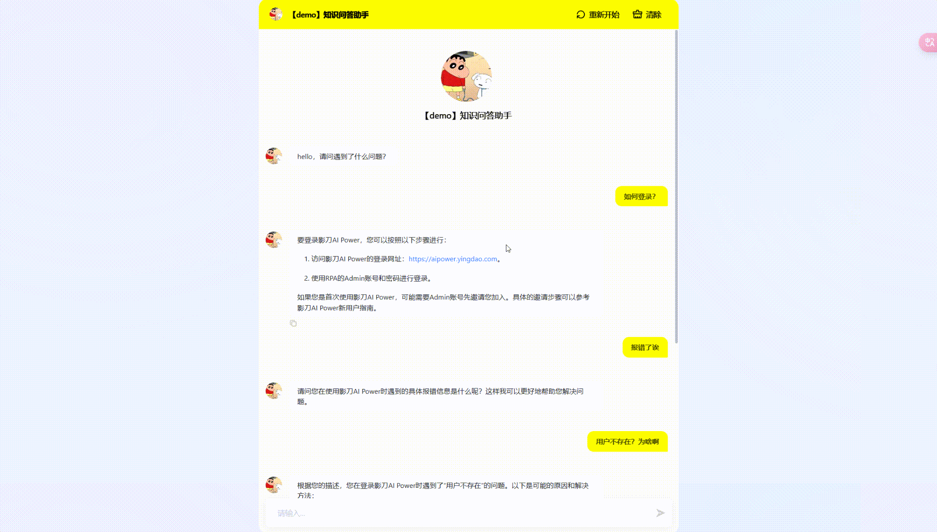 影刀AI Power社区版上线啦~打开https://aipower.yingdao.com/login-选择社区版-输入账号密码登录即可(账号密码同影刀 RPA 社区版)~在企业知识问答系统中,我们经常遇到这样的情况:用户提出非常模糊的问题,AI会直接基于知识库给出答案。这与人类交流方式很不一样 - 当遇到不明确的问题时,人们会先通过反问来理解真正的需求。今天我们就来聊聊如何打造一个更像人类的、会适时反问的 AI 问答助手。