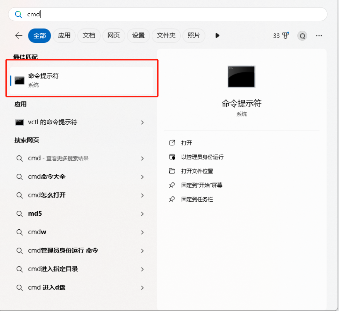 而后在Windows搜索框输入cmd或按下Windows键+R键,输入cmd;
