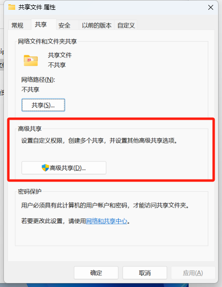 点击高级共享;