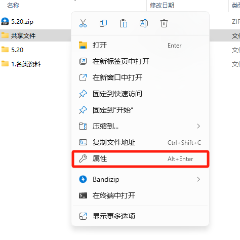 首先准备一个需要共享的文件夹,然后右击该文件夹,选择属性;