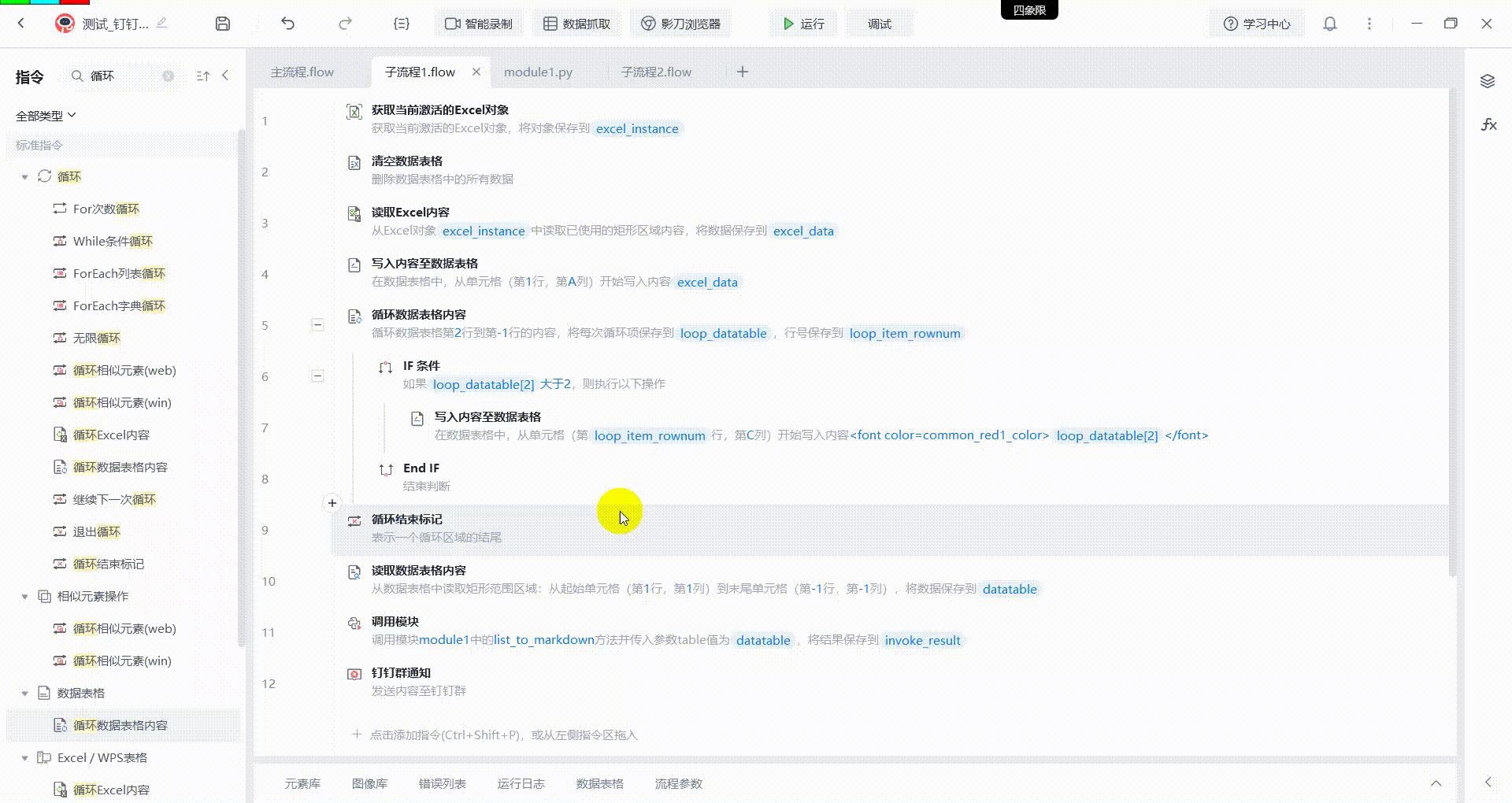 # 4. 可视化流程中可以通过"调用模块"的指令使用此模块