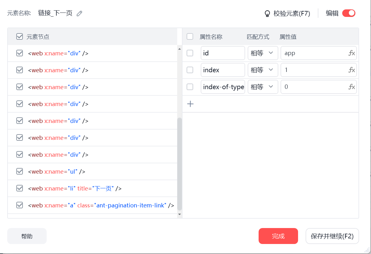 正因为影刀编辑器的元素编辑和网页源码的层级结构是相对应的,因此才有【校验】的说法。