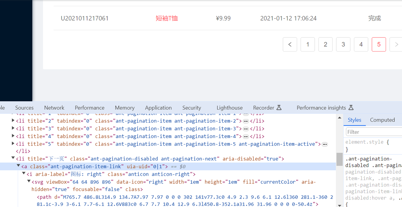 注意:大家的错误点在于aria-disabled属性是li标签的,但在元素编辑器里精确到了下面的a标签!
