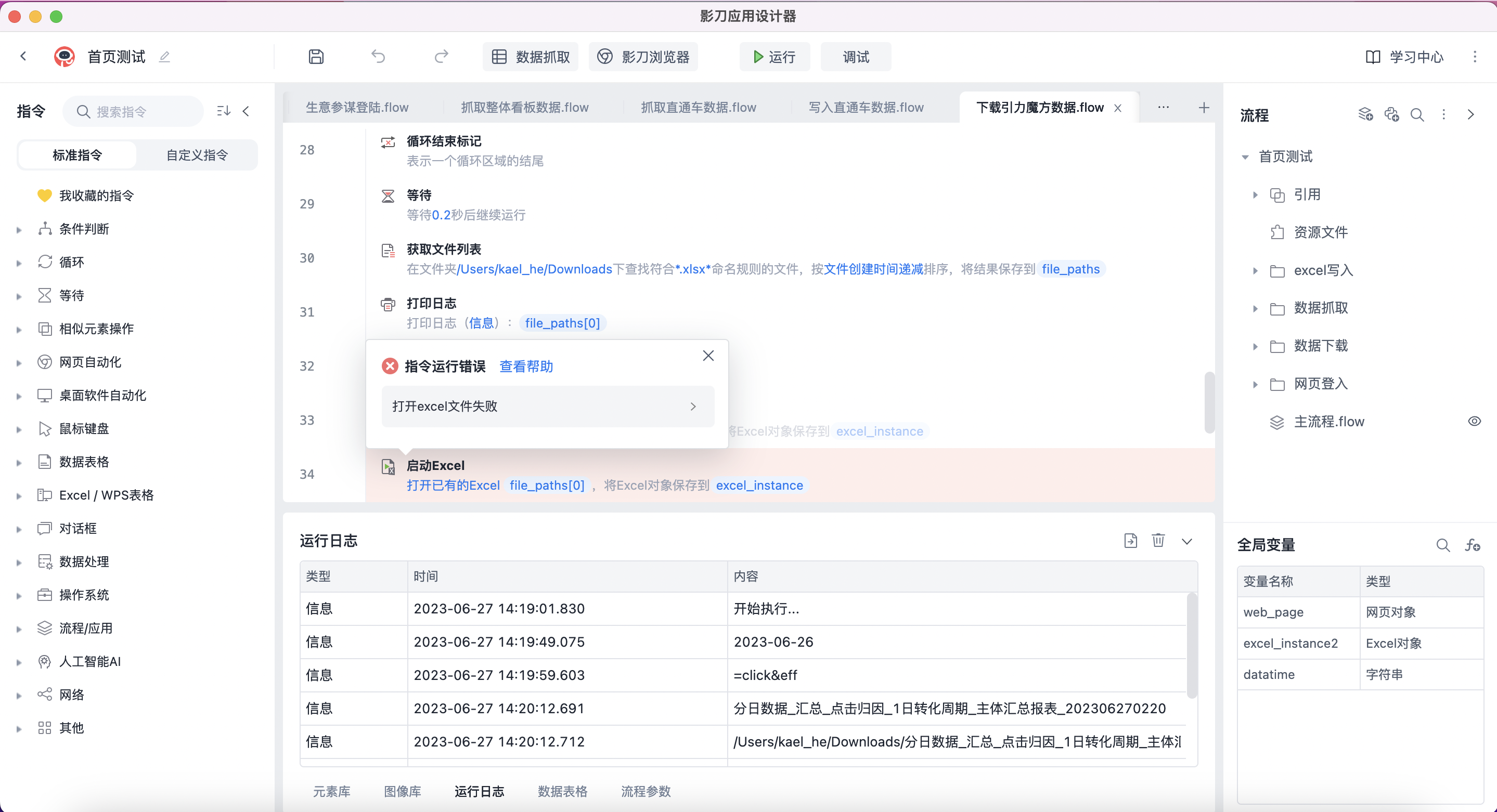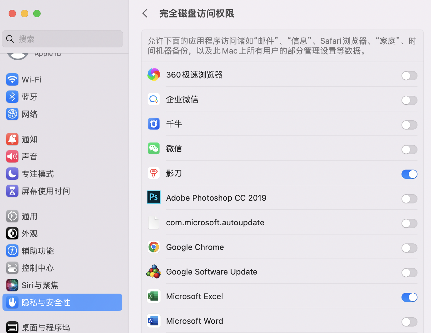 系统已经对影刀以及Excel ,开启完全磁盘访问权限设置.