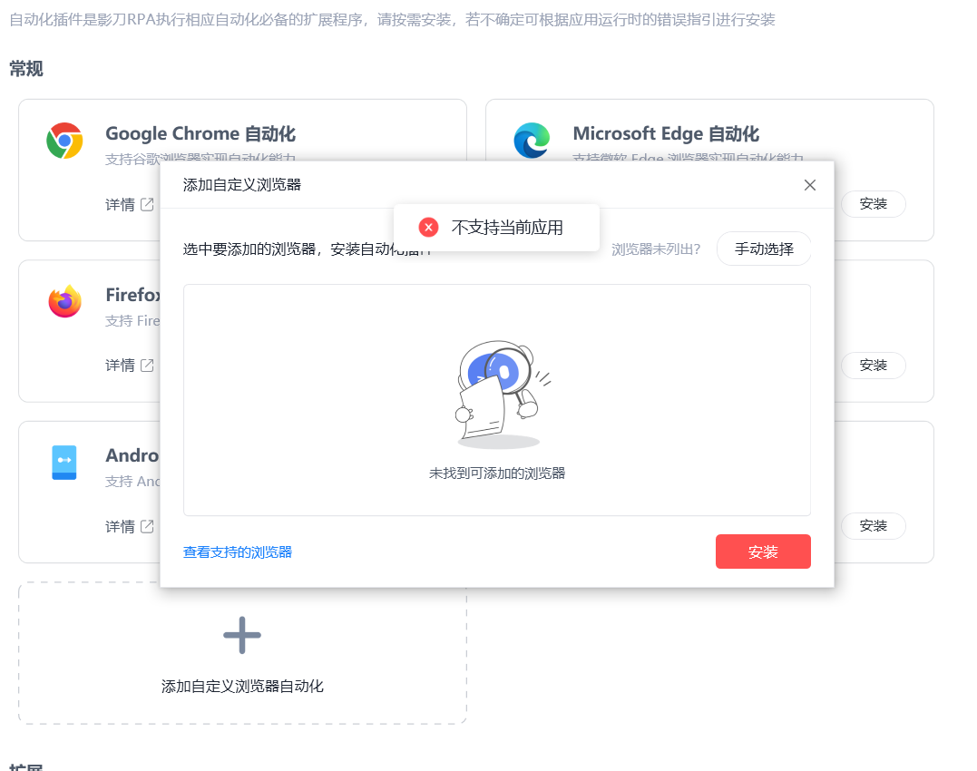 根据文档操作,影刀是个人版,添加不了adspower指纹浏览器,显示不支持当前应用https://www.winrobot360.com/community/detaildiscuss?id=8ed21225-e5ef-468e-97d7-84d5afff8fb6&from=homePage