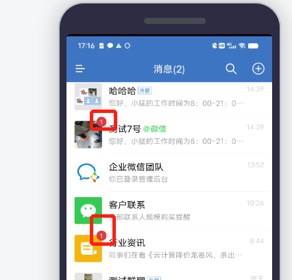 比如:有未读消息的是【测试7号】,但是偶尔会点击到【哈哈哈】或者【企业微信团队】元素上