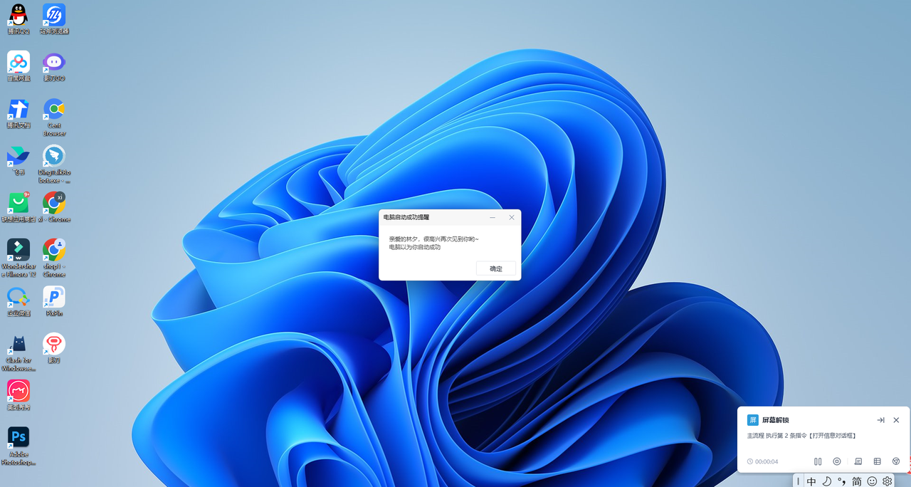 当我点击开机按钮后,系统自动启动了,影刀帮我自动解锁屏幕了