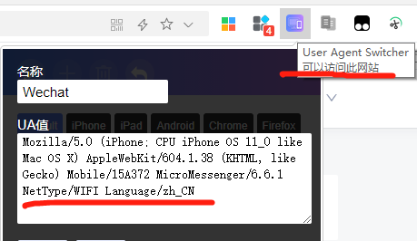 'user-agent=Mozilla/5.0 (iPhone; CPU iPhone OS 11_0 like Mac OS X) AppleWebKit/604.1.38 (KHTML, like Gecko) Mobile/15A372 MicroMessenger/6.6.1 NetType/WIFI Language/zh_CN'