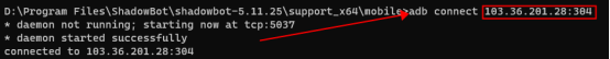 将箭头所指ip和本机ip写入其中,然后点击确定,即可开启云手机的adb连接地址