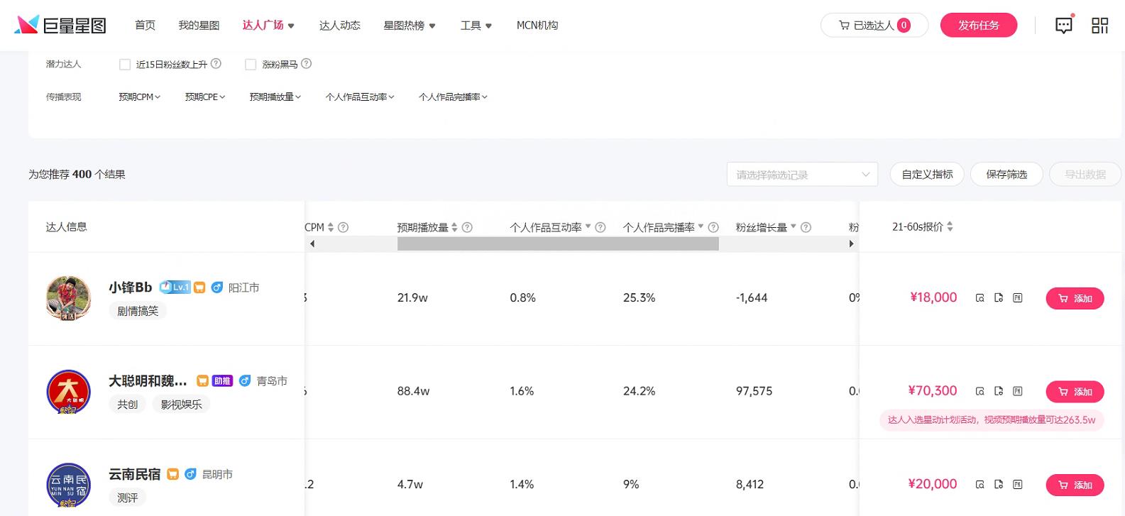 抖音巨量星图达人广场的信息,需要批量获取,来进行达人筛选,目前系统存在数据是加密的无法获取,使用影刀可以进行数据的批量获取,更便于筛选优质达人。