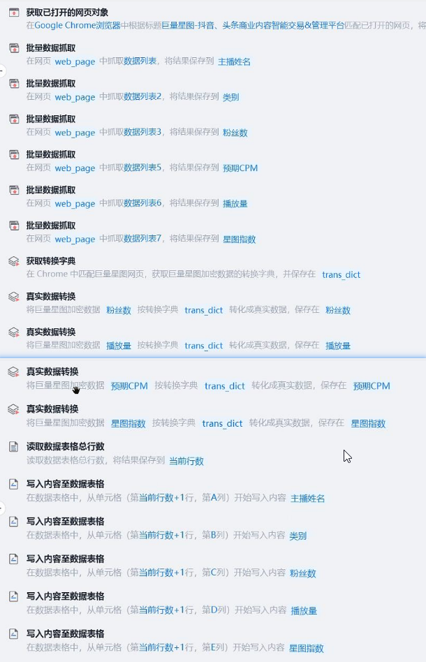 4.获取影刀自定义指令--巨量星图数据获取;依次使用如下指令