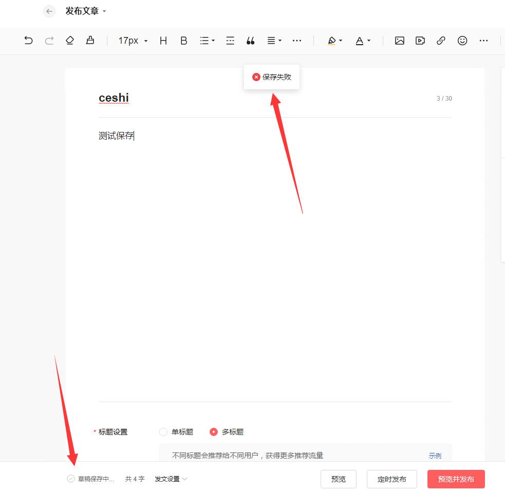 会提示保存草稿失败,我一开始以为是我的账号问题,最后换了别的浏览器才发现是影刀浏览器的问题