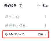 出现图中所示的样子代表连接过这台手机,然后我们点击连接,神奇的事情就会发生,会发现我们即使没登陆小米账号却可以连接上手机并进行自动化的操作
