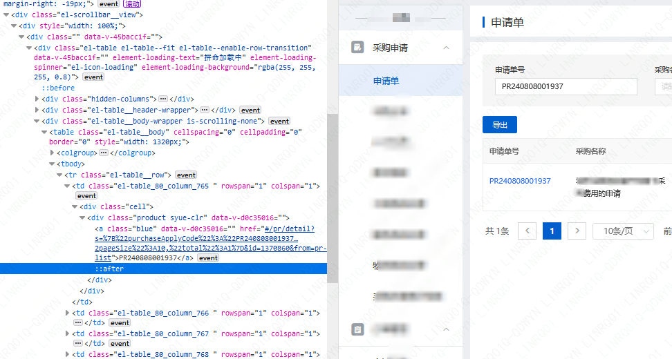 需求:我希望能通过更改网页代码,实现点击申请单号后,打开新的窗口。