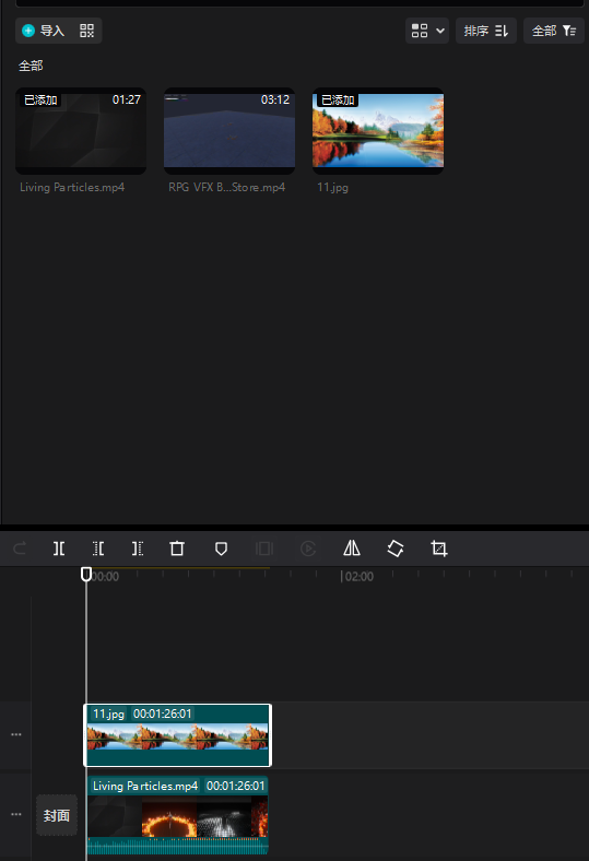 我导入的视频有长有短,想要实现轨道上,图片跟视频对齐效果。