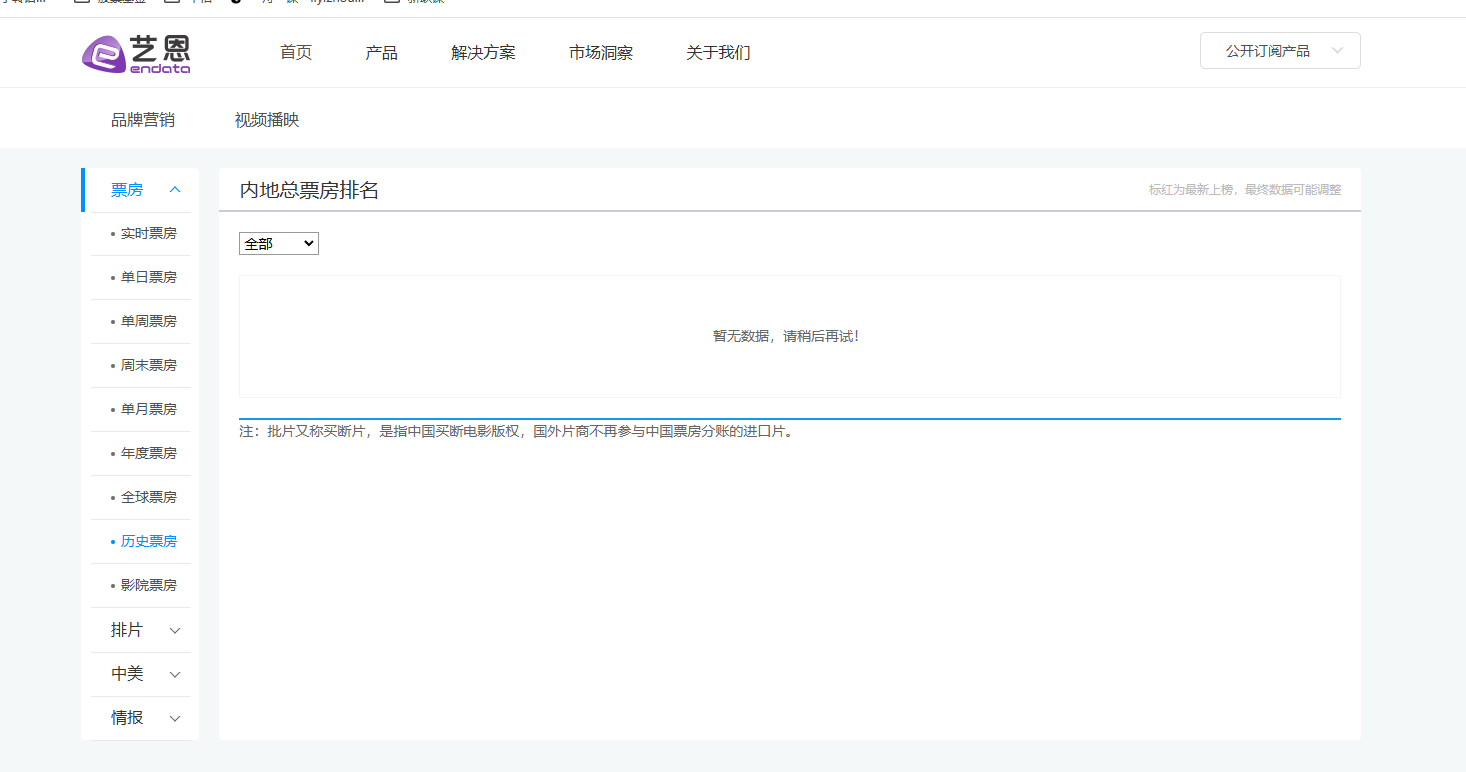 高级认证考试艺恩历史票房写入数据库的,网页经常没有数据了。
