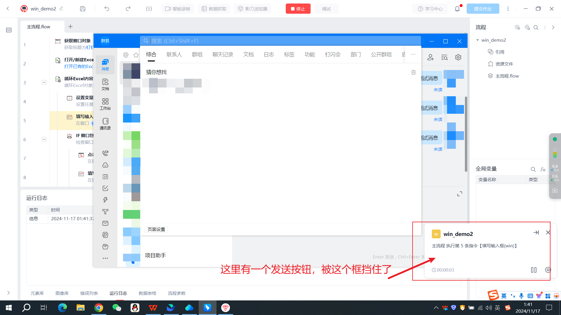 软件上有个发送按钮,但是被影刀的对话框挡住了,除了手动隐藏该对话框之外,还有什么方法吗