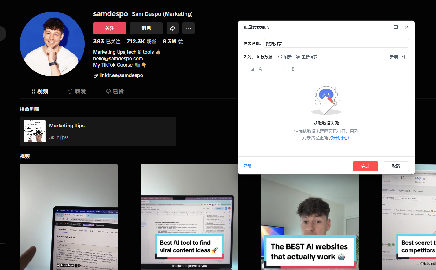 目的是从个人主页中抓取每个视频的播放量和链接保存到列表. 感觉应该不难, 但是试了几种方法, 都不太达到效果, 所以发出来求问: