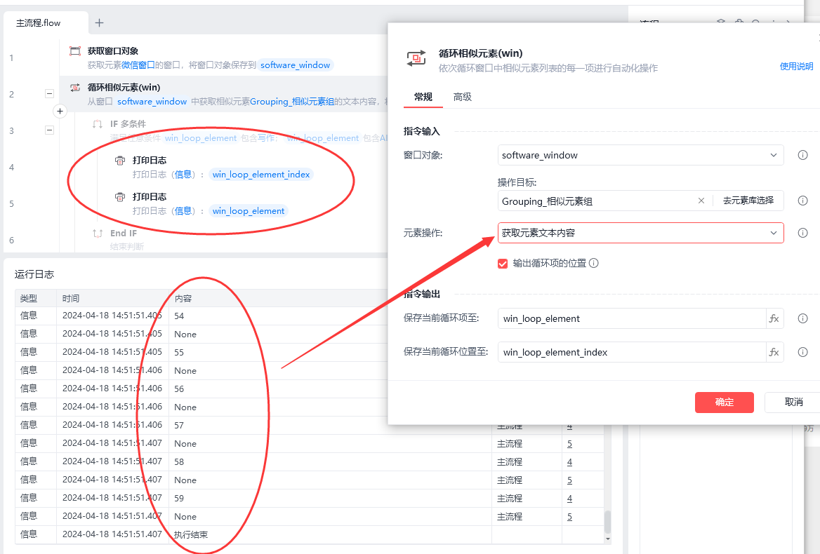 关于电脑端微信,公众号文章采集,已经在[公众号看一看]里面捕获到文章列表的元素,但是却发现这个元素无法打印出文本内容,我用的[循环相似元素(win)],用的里面的[获取元素文本内容],结果发现捕获的这个元素,只能打印位置,打印不出文本,如下图: