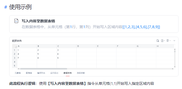 如图所示,这是官方的教程,二维列表是按行写入的: