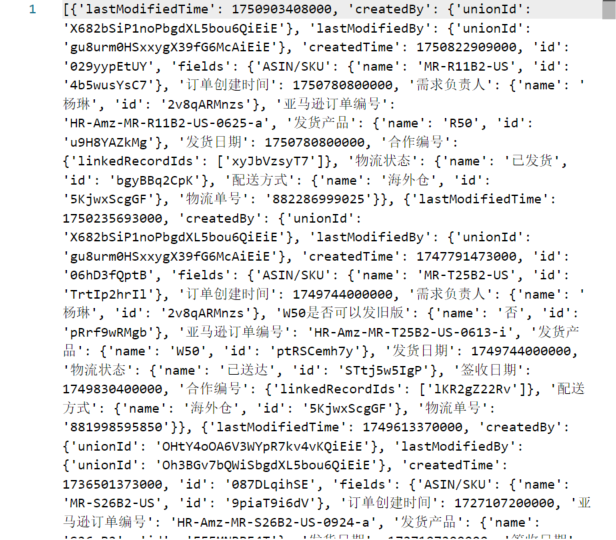 已经获取钉钉多维表权限,但返回数据并非标准接送,应该如何处理该记录并循环相关数据