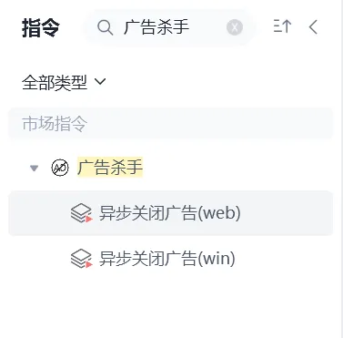 网页中频繁出现的弹窗和广告如何优雅的关闭,影刀市场中提供了现成的指令: