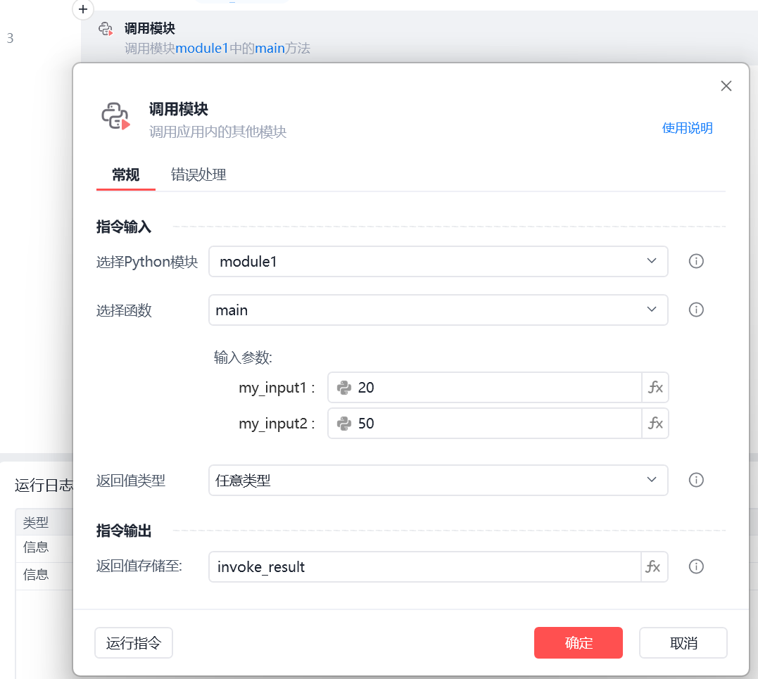 # 4. 可视化流程中可以通过"调用模块"的指令使用此模块