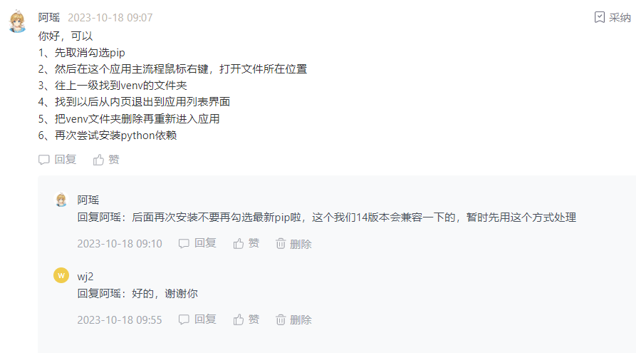 对于安装代码的问题问题,咱们阿瑶老师先是引导提问者清楚展示出报错信息,然后立马发现问题,非常专业🐼
