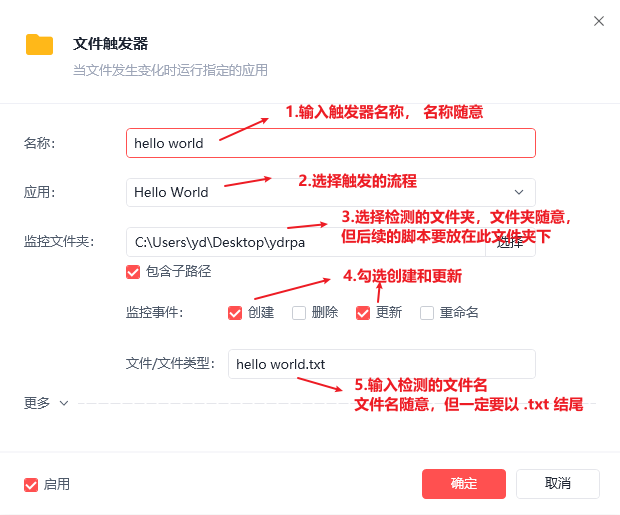 利用影刀的触发器功能,监控一个文件。