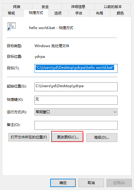 此时双击 hello world.bat 文件就可以运行应用了
