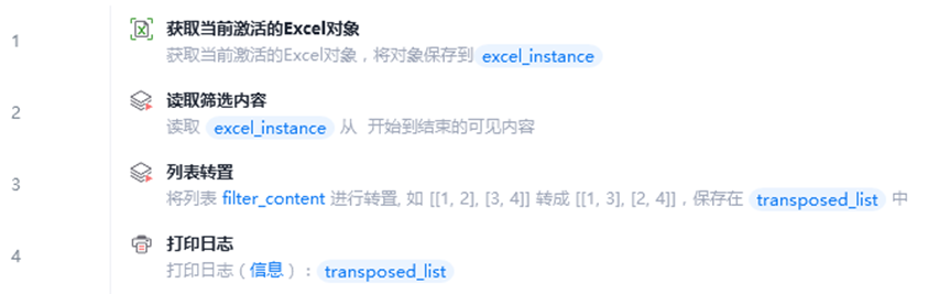 使用转置流程,将列表中的行变成列,将列的数据放到同一个列表里面