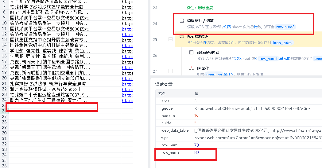 如下图,总行数明显时24,但因为我曾经用过第82行(已经删除内容,但没有全选这行 删除行),就获取总行数是82