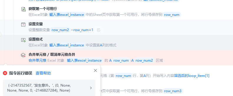 合并单元格报错(-2147352567, '发生意外。', (0, None, None, None, 0, -2146