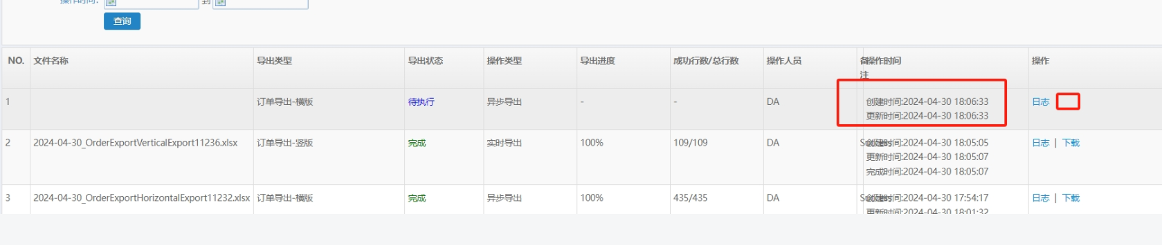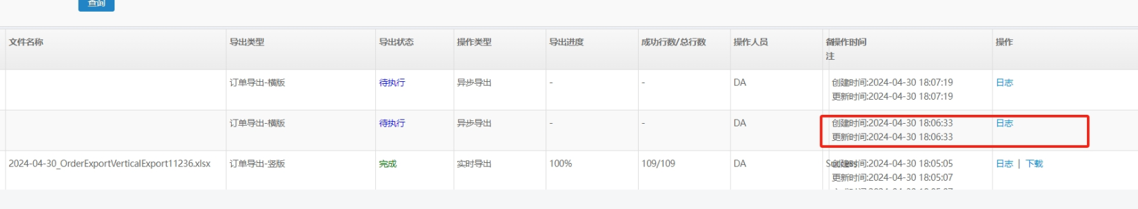 上面的图框选的是需要导出的订单。若在等待出现下载按钮时,假设被新的订单原位置被顶到下面了(如下图),这种怎么获取所需订单下载位置,,单纯用时间这个去判断,每次都还需要重新设置,有什么好办法呢