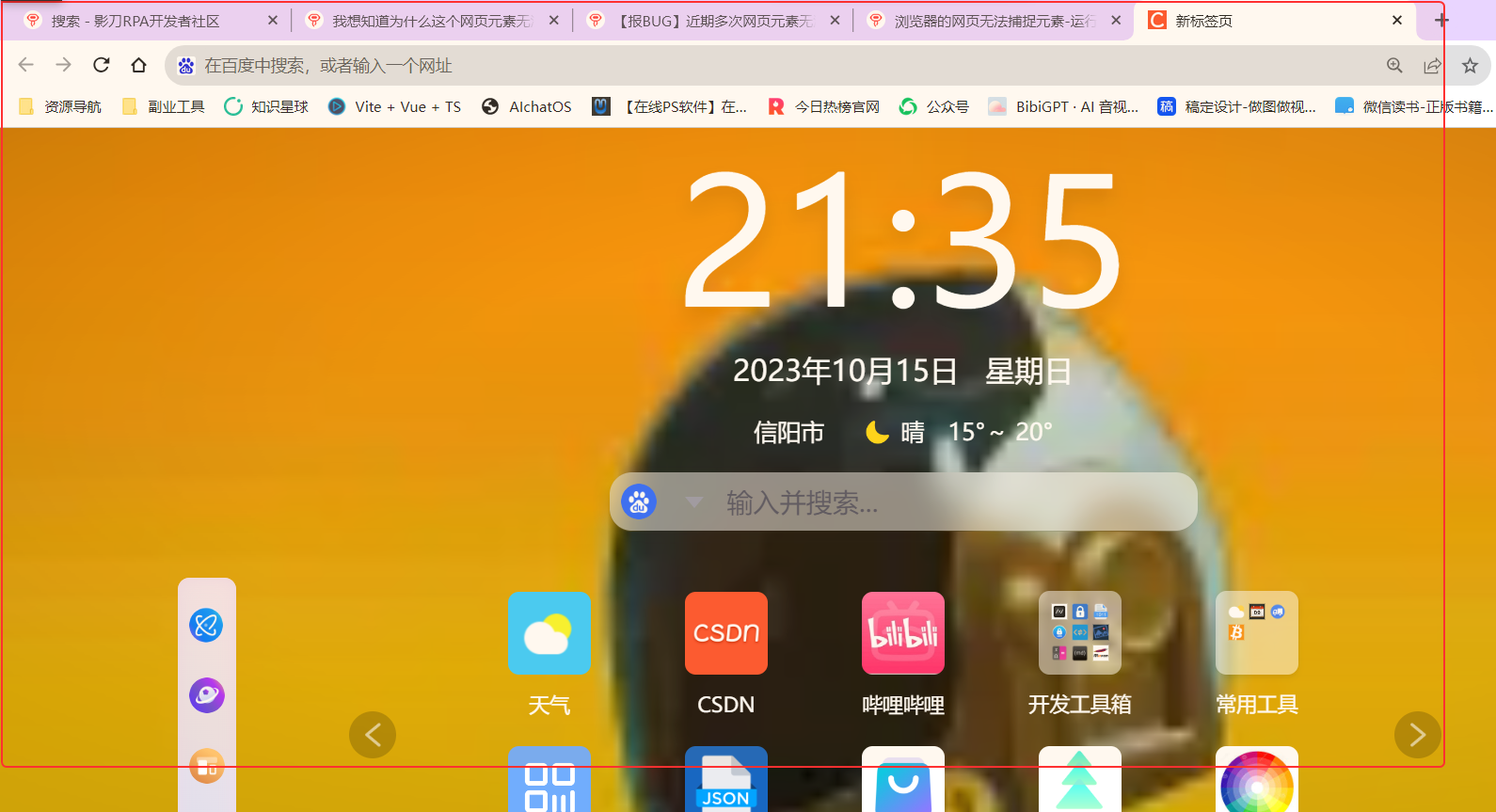 现象:使用的时edge浏览器,捕捉元素的时候提示未找到元素,同时在很多网页捕捉元素时还会偏移。