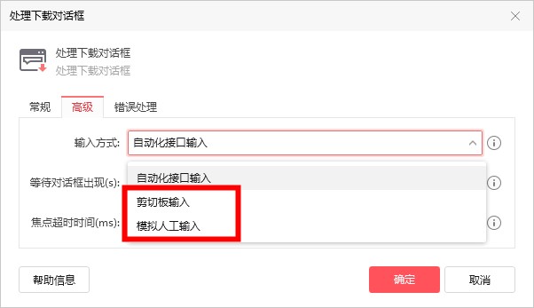 在指令的高级选项中更改输入方式,换用模拟人工输入或者剪切板输入