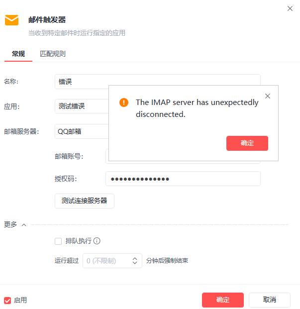 邮箱触发显示The IMAP server has unexpectedly disconnected.